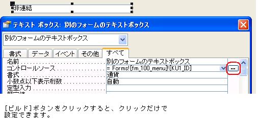 テキストボックスの[コントロールソース]プロパティに =Forms![フォーム名]![テキストボックス名] と記載することで 別の開いているフォームのテキストボックスの内容を表示することができます。 注意!参照されるフォームが開いていない場合、#Name? エラーが出力されます。