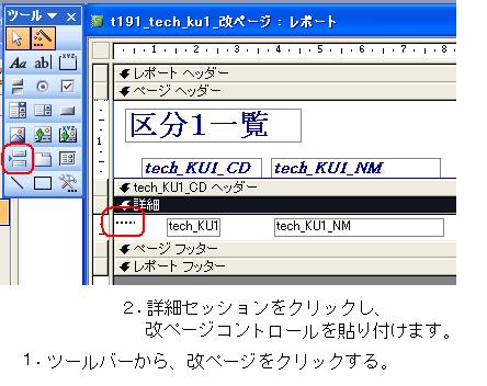 '<準備> レポートデザインで、改ページコントロールを設定する。