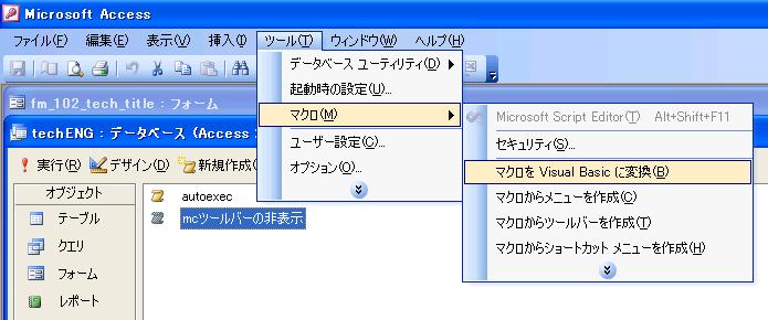 マクロをVisual Basic に変換するには、 変換したいマクロを選択し、[ツール] − [マクロ] − [マクロをVisual Basicに変換] をクリックします。