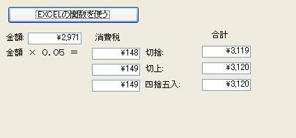 Me.四捨五入 = Excel.Application.Round(Me.金額 * 0.05, 0)