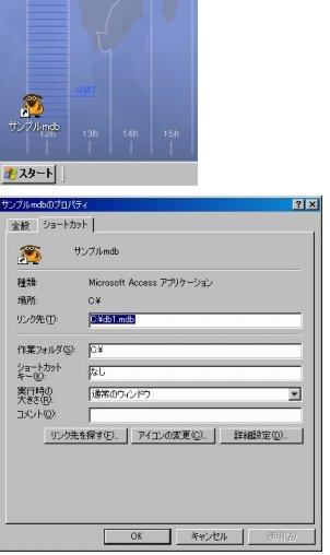 ショートカットを作成するファイルは、「C:\db1.mdb」 とします。